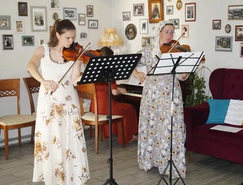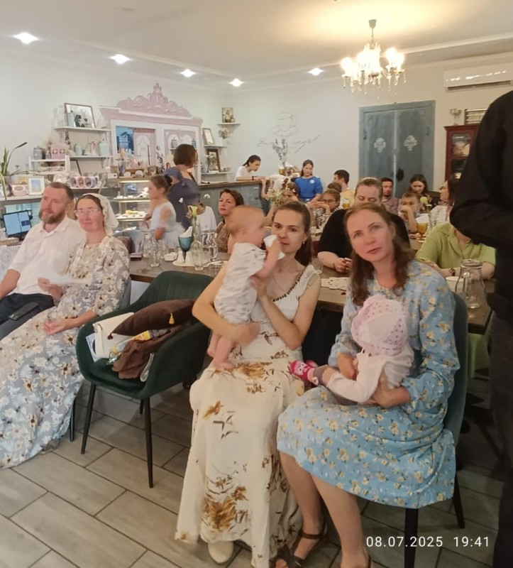 8 июля в литературном кафе "Все в САДъ!" прошёл ежегодный епархиальный Бал Ромашек, посвящённый Дню семьи, любви и верности, организованный детским центром "Возрождение" и клубом исторического танца "Сицилиана". В торжественном полонезе вышли около 20 красивых пар дам и кавалеров. Архимандрит Михаил (Семёнов) и руководитель проекта епархиальных балов Наталья Царёва поздравили всех гостей и участников бала с днём святых Петра и Февронии - покровителей семьи. Впервые Бал Ромашек с благословления отца Михаила прошёл в Козельске в 2015 в Городском саду с участием военного духового оркестра, и с тех пор уже 10 лет подряд стало доброй традицией отмечать День семьи в формате бала. В этом году основными героями праздника стали 14 творческих семей, которые постоянно принимают участие в епархиальных балах. Среди них 3 семьи священнослужителей: Куваевы, Капустины и Васильевы. Гости исполняли красивые исторические танцы, из которых особенно запомнились: вальс "Командор", Богемская полька и контрданс "Свечи в темноте". С удовольствием в танцевальных мастер-классах для взрослых и детей. Слушали замечательные выступления музыкальных семей: песню про Петра и Февронию в исполнении семьи Васильевых, "Аист на крыше" пели Куваевы. Антон Сербин исполнил песню "О счастье семейном молятся". Семья Перегонцевых подарила гостям праздника несколько очаровательных классических произведений: Евдокия Перегонцева спела песню Русалочки, шутливую песенку "Молчу, молчу" и на английском языке "Над радугой" в сопровождении замечательного концертмейстера Валентины Дедусь. Скрипичный дуэт Екатерины Титенок и Натальи Перегонцевой наполнил восхитительной музыкой творческую атмосферу кафе. Изюминкой бала стал особенный гость - кларнетист Константин Кудряшов. < вернуться к списку новостей | |||||||||||||||||||||||||||||||||||||||||||||||||||||||||||||