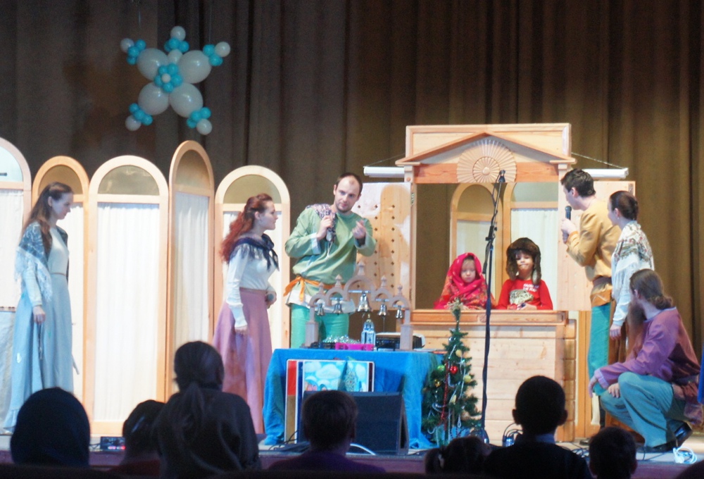 9 января в ДК «Прометей» состоялся рождественский праздник для детей Центра «Возрождение» среднего и старшего звена и юных жителей г. Сосенский. В фойе Дома Культуры ребят ждали игровые зоны, где они могли заработать сладкие призы. Затем православный театр «Живая вода» (г. Москва), приехавшие по приглашению отца Михаила, выступили с рождественским спектаклем «Путешествие в Вифлеем». Праздник завершился конкурсом рождественских костюмов. Епископ Козельский и Людиновский Никита, принимавший участие в Рождественском празднике, наградил всех конкурсантов мягкими игрушками.
