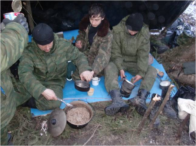 8-9 марта 2014 года воспитанники Военно-патриотической дружины имени Святого Благоверного Александра Невского, которые занимаются на базе центра дополнительного образования «Возрождение», провели полевой выход. Целью, которого было практическая отработка навыков выживания в сложных метеоусловиях и ведение поисковых мероприятий с элементами военной подготовки. Группа состоял из 6 человек: Еримов Валерий, Стёпин Александр (учащиеся Козельского филиала Дмитровского государственного политехнического колледжа), Кузницин Павел, Кузницин Пётр, Шабуроа Артём (учащиеся Козельской православной гимназии). Руководил группой, Артебякин Андрей Павлович (тренер «Школы выживания» центра дополнительного образования «Возрождение») Легенда полевого выхода состояла в ведении разведки методом поиска. Согласно легенде проводился поиск местности указанной на карте, организация днёвки без палатки, обеспечение жизнедеятельности в условиях низких температур, приготовление пищи в полевых условиях. Так же с бойцами дружины были проведены занятия по организации охранения полевого лагеря, где ребята каждые 2 часа, по очереди, несли караульную службу. Были изучены способы ориентирования на местности, прокладывание маршрута и скрытное передвижение по нему. Проводились занятия по тактико-специальной подготовке – передвижение в тылу врага и действия при попадании в засаду. В течении двух суток ребятам пришлось пройти порядка 30 км с полной выкладкой которая составляла не менее 25 кг на каждого. Несмотря на сложные погодные условия (грязь, распутица, заснеженные участки, низкая температура) участники полевого выхода стойко переносили все тяготы похода и достойно выполнили поставленную задачу. < вернуться к списку новостей | |||||||||||||||||||||||||||||||||||||||||||||||||||||||||||||