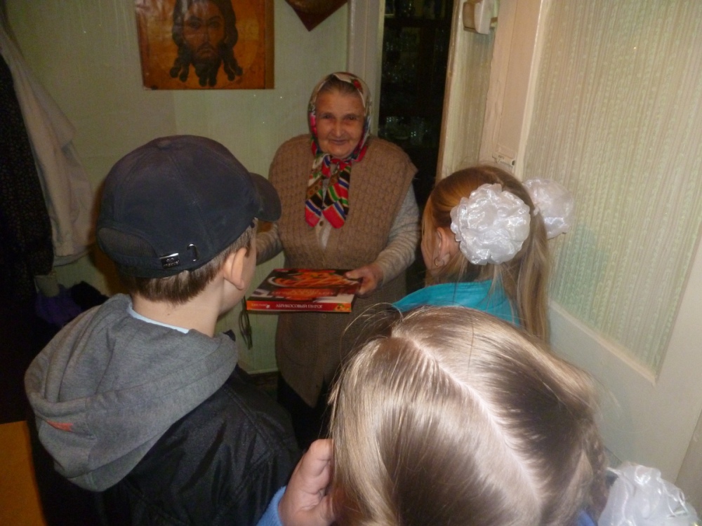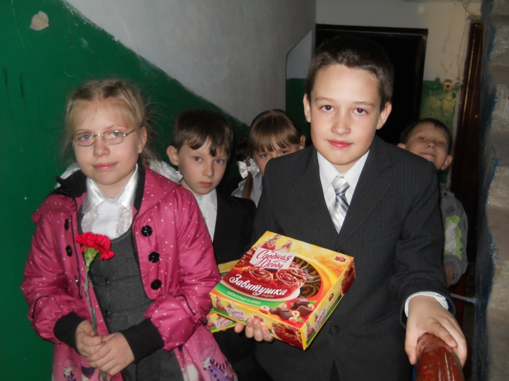В православном детском Центре «Возрождение» есть добрая традиция поздравлять на дому ветеранов в канун Дня Победы. А поддержали эту акцию учащиеся 3 «А» класса КСОШ №1 классный руководитель Буканова Лидия Ильинична и родители. Вот уже третий год ребята посещают каждого ветерана., проживающего в Козельске, дарят им цветы и подарки со словами благодарности за их подвиг. Читают стихи и желают ветеранам крепкого здоровья и бодрости духа . Мы всегда будем помнить то самоотверженное мужество, которое они совершили в борьбе с фашизмом.