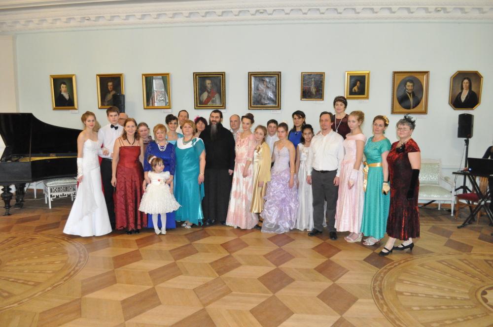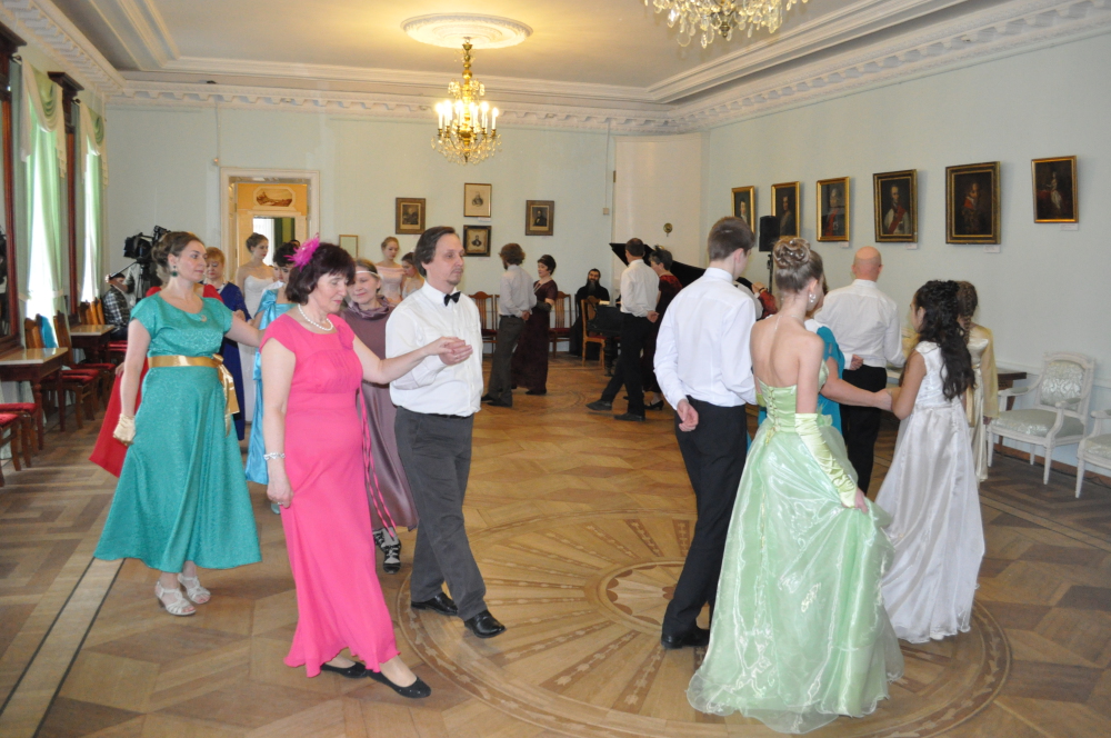 5 марта 2016 года в доме - усадьбе Гончаровых Полотняного завода Калужской области состоялся восьмой Епархиальный бал. Сретенский бал был запланирован выездным, и прошел он в интерьерах дворянской усадьбы. На паркете бирюзовой залы, где танцевали ещё Александр Сергеевич Пушкин и Наталья Гончарова 12 грациозных пар в бальных нарядах кружили в вальсе, били ножкой мазурку и торжественно вышагивали в полонезе. Приветственное слово для поздравления участников, ведущие Дмитрий Иванов и Юлия Мялькина предоставили игумену мужского монастыря Спаса Нерукотворного Пустынь отцу Михаилу. На бал были приглашены взрослые пары, сменный состав танцевальной студии «Падэграс» ДЦ «Возрождение» под руководством хореографа Царевой Натальи Ивановны. Всего станцевали 18 танцев разных эпох и стран: полонез, па-де-грас, мазурка, конский бранль, контрданс, различные польки, вальсы, кадрили и т.д. Во время бала среди всех желающих провели конкурсы для дам и кавалеров, разыграли фанты. В игровых танцах могли принять участие все желающие, в том числе и гости бала. Администрация музея «Полотняный завод» выразила глубокую признательность организаторам бала и пригласила провести в усадьбе Гончаровых следующий Рождественский бал! < вернуться к списку новостей | |||||||||||||||||||||||||||||||||||||||||||||||||||||||||||||