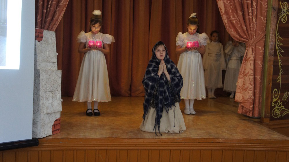 Перед началом представления ребят поздравил с прошедшим праздником «Рождество Христово» отец Виктор.