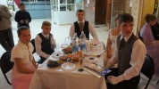 Православный детский центр «Возрождение» отметил свой 10-летний юбилей, который состоялся 20 октября 2017 года в КДЦ «Прометей» г.Сосенский и прошел в формате Бала. В фойе была представлена выставка детских работ и фотографии коллективов Центра. Празднично накрытые столы с расписными самоварами ожидали гостей. Открыли торжество «Гранд -Маршем» нарядные дамы и кавалеры. Первому для поздравления предоставили слово Его Преосвященству, Епископу Козельскому и Людиновскому, Никите. Он поздравил всех сотрудников и педагогов Центра с красивой юбилейной датой, вручил им медали и грамоты, а духовник ДЦ «Возрождение» игумен Михаил (Семёнов) наградил лучших воспитанников и выпускников. Благодарственные письма за многолетнее сотрудничество из рук директора ДЦ «Возрождение» Пановой Ирины Александровны получили директор ДК «Прометей» Кобякова Ирина Сергеевна, Чичикина Наталья Николаевна, Кузнецова Галина Николаевна. Глубокую признательность и благодарность выразили руководителю Кондитерского объединения «Мирамэль» Бураченко Андрею Владимирович, который любезно предоставил сладости к праздничному столу. Далее слово для приветствия и поздравления от администрации района предоставили заместителю заведующей отделом образования Пивковой Яне Геннадьевне. Музыкальным подарком коллектив Центра поздравил директор Подборской детской школы искусств Заслуженный работник культуры России Меркулов Геннадий Петрович. Воспитанники театральная студии «Образ» Ратанов Алексей, Арсёнов Владислав, Какурина Агния и Серёгина Мария рассказали гостям в форме сказки о жизни Центра «И у нас есть чудо тоже!» и показали о нем фильм. В ходе праздника прозвучали: песня «Архангел Михаил» и романс «Ночь светла» в исполнении Павловой Марии и Суторминой Татьяны. Впервые вместе с участниками клуба исторического танца «Падэграс» вышли на паркет педагоги ДЦ «Возрождение». В Бальной программе танцевали: вальс «Жизнь художника», вальс «Нежность», «Падэграс», «Польку-серпантин» и «Берлинскую польку», «Ирландский» и «Шотландский» вальсы, «Шапелуаз», «Вальс на троих», и многие др. Все желающие могли принять участие в мастер-классе и игровых танцах «Полька-тройка», «Полька-котильон с руками» и «Вальс-котильон «Снежный ком». В конце Бала каждый на память о празднике получил в подарок ангелочка и буклет о Центре «Возрождение». < вернуться к списку новостей | |||||||||||||||||||||||||||||||||||||||||||||||||||||||||||||