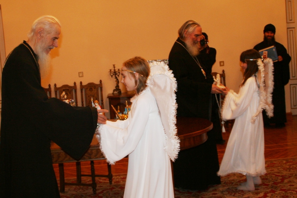В воскресенье, 9 января, преподаватели и воспитанники православного детского центра "Возрождение" поздравили с праздником Рождества Христова калужских владык - митрополита Климента и архиепископа Георгия.