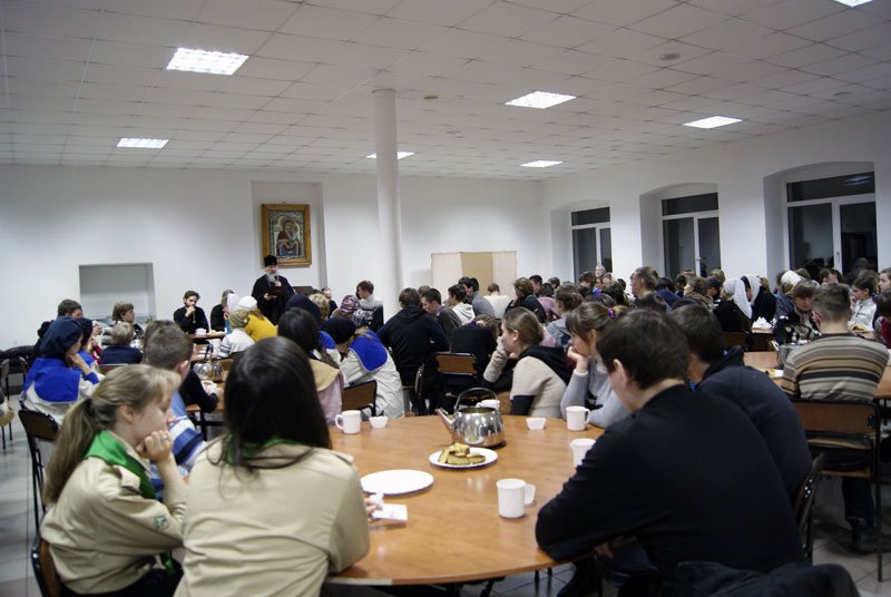 11–13 февраля в детском лагере «Златоуст» под Калугой прошла встреча православной молодёжи, организованная Калужской епархией. На это собрание были приглашены руководители и активисты православных молодёжных организаций Калужской области и соседних с ней регионов, а также молодые прихожане храмов. Детский центр "Возрождение" представлял преподаватель Закона Божия Лунин Антон Павлович, а также выпускники Центра: Бусалаев Серафим, Гинкул Николай и др. Главной целью встречи было знакомство представителей верующей молодёжи друг с другом, установление между ними контактов, обмен опытом, и, в перспективе, консолидация их усилий, особенно в области миссионерской и социальной работы. В первый день работы встречи к собравшимся обратился митрополит Калужский и Боровский Климент. Владыка призвал молодых людей сохранять в своём сердце Бога, потому что истинное добро и радость могут быть только с Ним, а зло есть следствие отсутствия стремления к Богу в нашей жизни, как тьма – лишь отсутствие света, а холод – всего только отсутствие тепла. Также Владыка преподнес участникам встречи подарки – православные календари и книги. Три дня работы молодежного слета прошли весьма интересно и продуктивно. Её участники, соревнуясь друг с другом, выполняли задания–экспромты на организацию православных праздников, проводили круглые столы, мастер–классы и дискуссии, и, главное, рассказали собравшимся о себе и о своих организациях. Всего, в этой встрече, приняло участие более ста человек. Среди них присутствовали представители таких организаций, как Калужское Православное Молодёжное Движение, Тульское Православное Молодёжное Движение, Организация Российских Юных Разведчиков (Обнинск), Национальное Объединение Добровольцев «Русь» (Обнинск), центр дополнительного образования «Возрождение» (Козельск), Свято–Амвросиевский православный молодёжный центр при КГУ им. Циолковского (Калуга), дружина юных разведчиков имени апостола Андрея Первозванного при храме Покрова–что–на Рву (Калуга), молодёжный православный дискуссионный клуб «Вера» (Брянск) и других. Участники встречи активно обменивались друг с другом контактными телефонами, знакомясь не только в ходе официальных мероприятий, но и неофициальных вечерних «посиделок» с гитарами, которые организовали юные разведчики из дружины Покровского храма. Кроме того, находилось время и для развлечений – на второй день встречи для желающих был организован небольшой лыжный поход по окрестностям лагеря, а вечером того же дня – просмотр известного фильма «Поп» с последующим его обсуждением. Как рассказал один из главных организаторов встречи, секретарь комиссии по работе с молодёжью, иерей Кирилл Хланта, подобное мероприятие проводится в Калужской епархии впервые, и он возлагает на него большие надежды. «Мы, и прежде всего, верующая молодёжь, должны самой своей жизнью проповедовать Христа окружающим. И главные усилия следует обратить на привлечение в храм именно молодых людей. Потому что когда человек приходит в храм, он часто видит там одних бабушек…». Дни встречи пролетели незаметно, но было ясно, что её участникам она очень понравилась – на «Листе предложений», специально повешенном на стене, чтобы гости мероприятия могли оставить на нём свои отзывы, многие писали: «Хотим провести такую вст