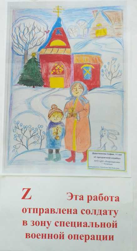 На этой неделе пять работ, которые принимали участие в Областной выставке детского творчества "Христос рождается, славите!", проходившей в г. Калуга были отобраны для отправки зону СВО на Украину. Их авторы - воспитанники объединения «Художественная студия» Центра «Возрождение» г. Козельск: Иванова Милана, Барыкина Ольга, Гуркина Елена, Дудыченкова София, Гуков Иван. Руководитель объединения – Колобова Зоя Ивановна. < вернуться к списку новостей | |||||||||||||||||||||||||||||||||||||||||||||||||||||||||||||